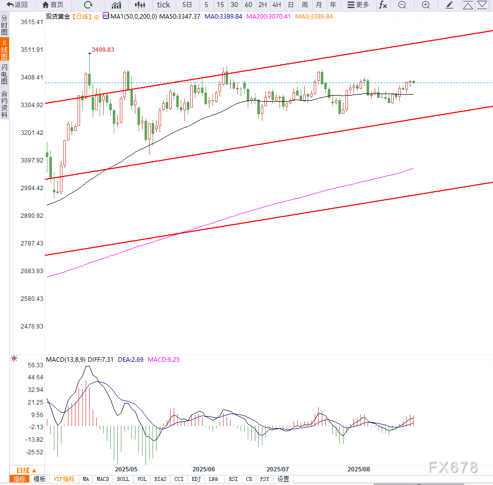 阻力位:上方关键阻力在3,410美元(布林带上轨),若突破将上看3,439美元(7月23日高点),进一步目标在3,500美元心理关口。